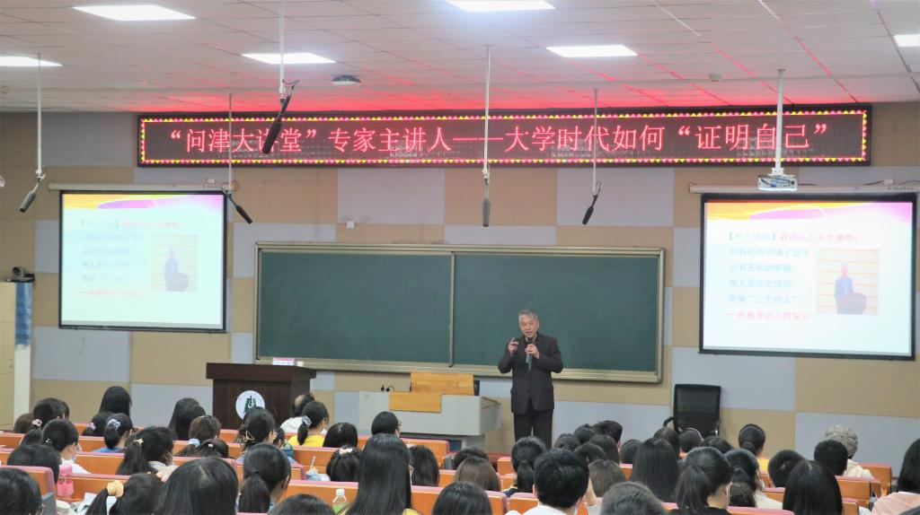 10月29日晚,湖北大学化学化工学院退休教授、湖北大学老教授协会常务副会长方光荣应邀来到通识教育学院,为立学苑2020级全体新生作“问津大讲堂”专家主讲人报告,报告主题为“大学时代如何‘证明自己’——同大学生探讨成才的路径与气质修炼”。讲座由院党委副书记、副院长王春喜主持。