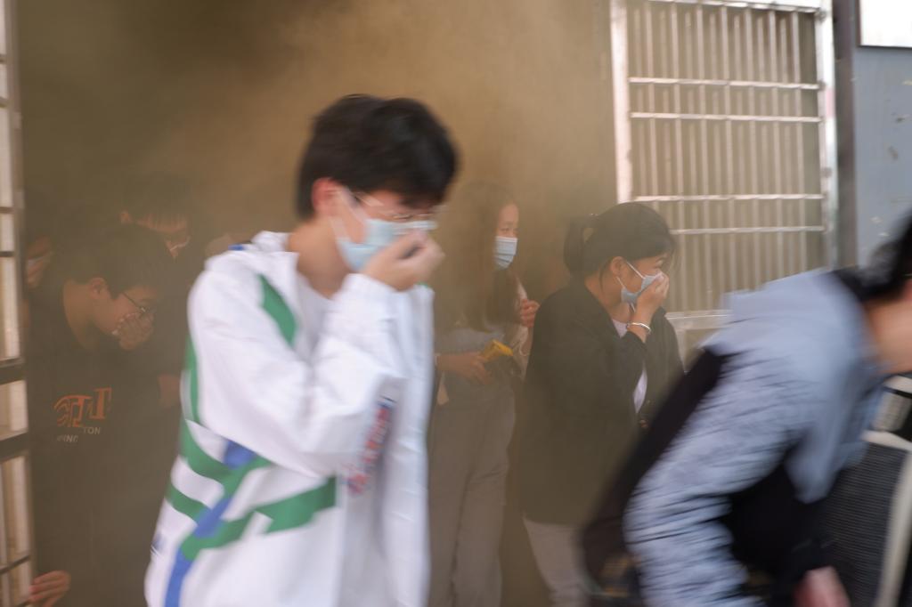 首先,2000余名师生以习苑为单位在教室观看了消防警示宣传片,一个个真实的火灾案例,给全体师生员工敲响了警钟,也进一步增强了火灾防范意识;随后,2000余名师生开展了火场逃生演练,在消防警报声中,穿过浓烟滚滚的安全通道,在疏散人员的指挥下,师生捂住口鼻、弯腰撤离教学楼,并到达教学楼广场指定位置,通过演练,使每一位参演师生熟悉火场逃生的方法和要求;最后,阳逻消防中队消防员向参演师生展示各类消防器材,如消防指挥车、消防灭火车、消防登高车及消防队员个人装备,并邀请学生代表进行体验,此外,消防官兵还详细讲解和演示灭火器的使用流程、方法,学院食堂师傅、宿管阿姨、辅导员及部分学生代表分批现场使用灭火器进行灭火,通过实际操作,基本掌握灭火器的使用方法。