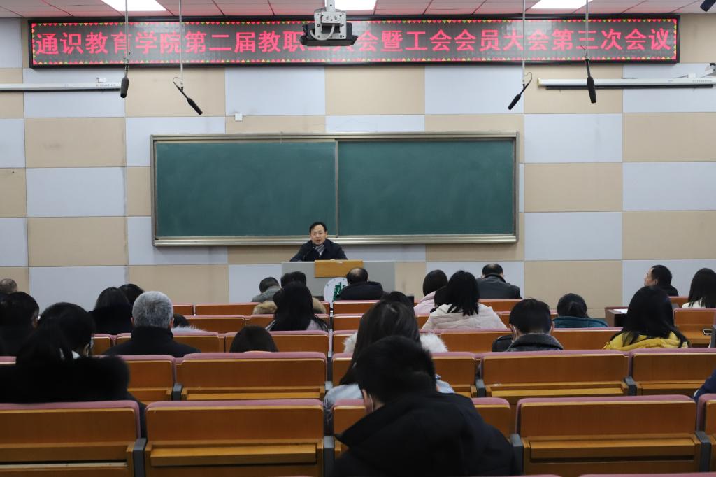 1月13日上午,通识教育学院第二届教职工大会暨工会会员大会第三次会议胜利召开。学院领导班子成员、全体教职员工参加会议。