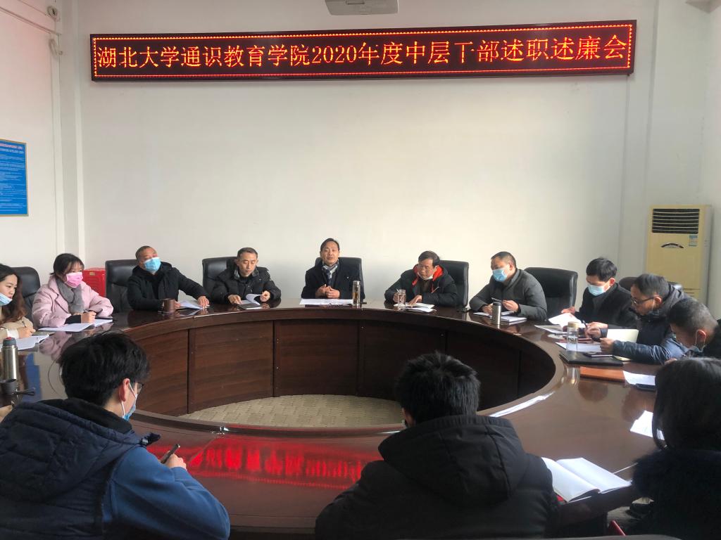 1月20日上午,通识教育学院在二楼会议室召开领导班子2020年度履职尽责考评工作会议。学院领导班子成员、院办公室负责人、部分辅导员及教职工代表参加会议。会议由院长李本义主持。