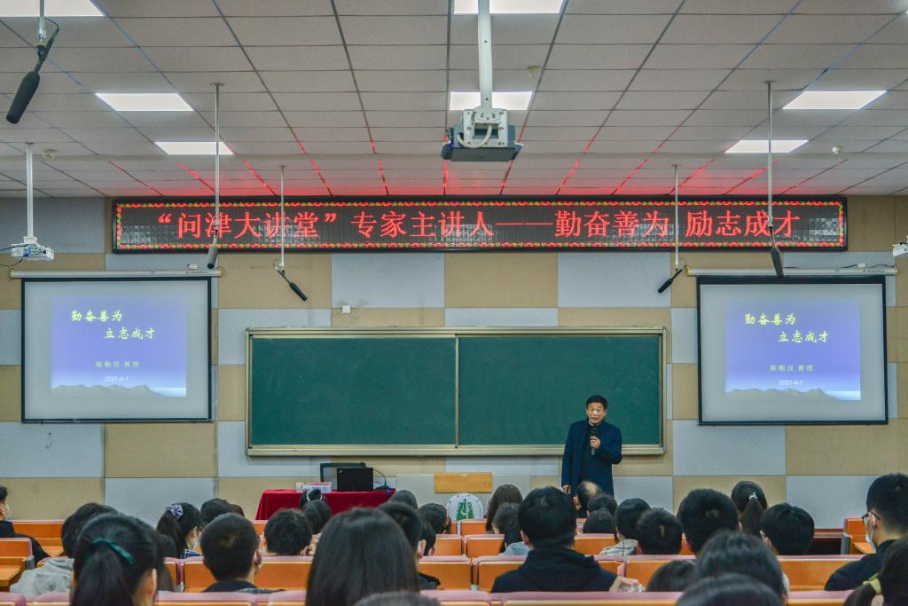 4月8日晚,通识教育学院开展以“勤奋善为,励志成才”为主题的问津大讲堂讲座。湖北大学物理学教授陈贻汉应邀担任本期专家主讲人。湖北大学老教授协会常务副会长方光荣、副会长宋光才、通识教育学院党委书记王春喜及思睿苑学生200多人共同聆听了本次讲座。