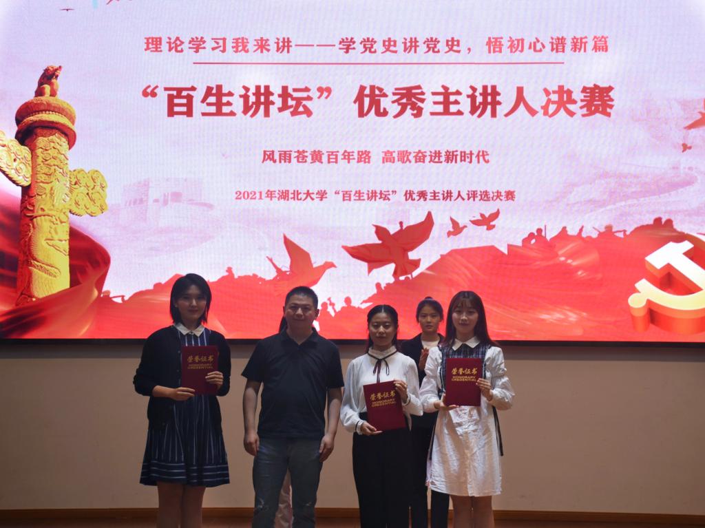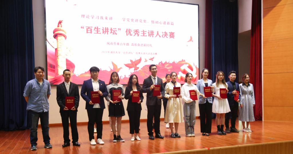 5月19日下午,在校团委举办的“理论我来讲——学党史讲党史,悟初心谱新篇”2021年湖北大学“百生讲坛”优秀主讲人评选活动中,通识教育学院2020级播音与主持艺术专业学生刘柳昕和2020级思想政治教育专业学生赵恩霆分别斩获银牌和铜牌。