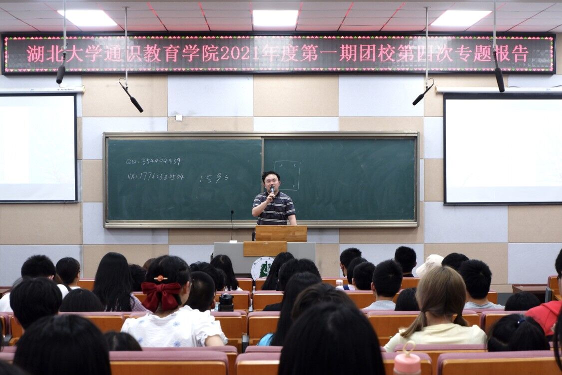 5月24日晚,通识教育学院2021年度第一期团校第四次专题报告暨结业仪式在B300教室举行,院党委副书记韩凯、院学工办主任马骁俊、院团委书记吴玉莲以及225名学员参加。