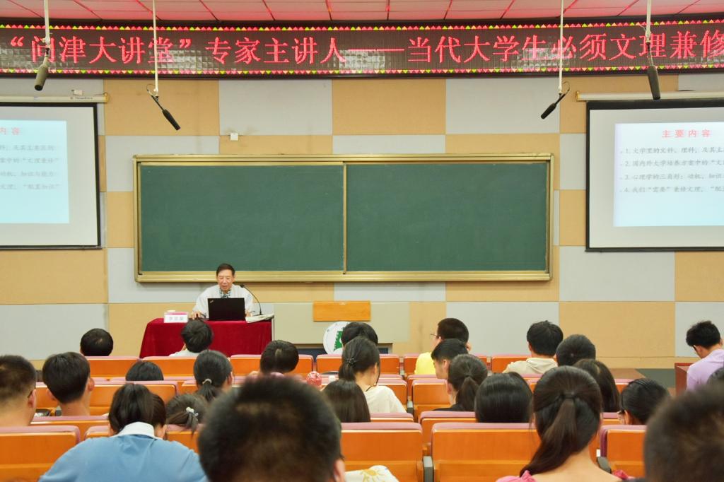 6月3日晚,通识教育学院邀请湖北大学计算机与信息工程学院李宗荣教授做客“问津大讲堂”,为师生作“当代大学生必须文理兼修”主题报告,院党委书记王春喜、立学苑辅导员黄河及里仁苑学生200余人聆听了报告会。