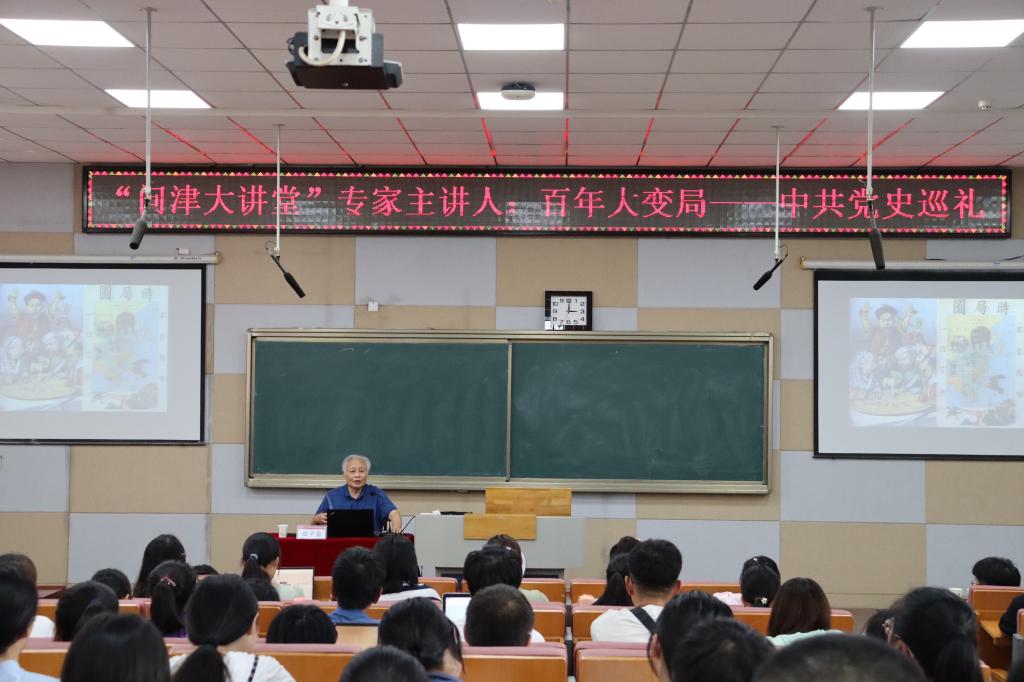 田子渝教授在讲座开始引出这样一段话:“我们生在社会主义的中国,生在共产党领导下的中国,要对中国共产党的百年历史有基本的了解。”田子渝通过讲述各个时期的重要历史事件,生动再现了中国共产党艰难曲折而又光辉的百年历史。在讲述中国共产党土地革命时期中,田子渝一一列举了当时为中国革命事业甘于奉献、勇于牺牲的优秀党员及其事迹,鼓舞学生学习他们的优秀精神和品质。