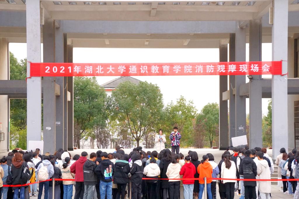 为进一步宣传普及消防安全知识,增强师生消防安全意识,提高应对突发事件自防自救能力。11月9日下午,通识教育学院开展2021年校园消防安全演练。演练由播音与主持艺术专业学生傅泓森和尚源纯主持。阳逻消防救援站消防员、学院安保人员、学生代表及学院后勤人员参与此次演练。