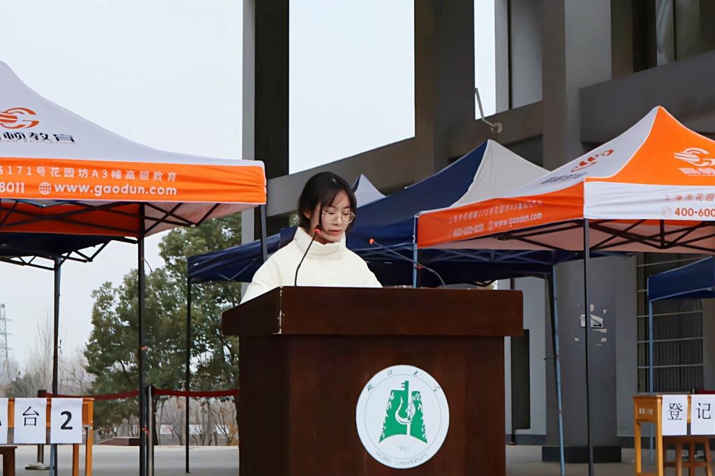 大会第三项由笃行苑2中国语言文学类21级学生邱红樊作为学生代表讲话。邱红樊同学从中国共产党的百年奋斗辉煌历程中看见了一代代青年不忘初心、牢记使命,为中华民族伟大复兴奉献自己青春的力量。她号召各位同学,作为新时代的大学生,要勇于拼搏,保持奋斗精神,传承红色基因,敢于担当使命,向着伟大复兴中国梦不断前进。