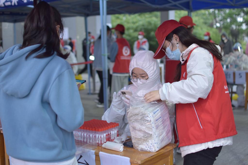 据悉,早在4月1日“星火青年先锋队”便已开始上岗,为学院核酸检测抽检工作布置场地,并维持现场秩序。在4月15日的核酸检测中,先锋队员第一次穿上队服,戴上“小红帽”,一些队员还化身“大白”,正式开始志愿服务。据统计,先锋队员每人每次服务要为近500人登记健康码信息,时长约2小时。截至4月19日,他们已经参与了7次核酸检测,将全院的检测时间从3小时缩短到现在的1.5小时之内。据韩书记介绍:“因为通识教育学院只有大一的学生,基本是新培养的入党积极分子,但是党员的发展、培养工作就是要‘早发现、早选苗、早育苗’。在学院大型活动中,利用‘星火青年先锋队’发扬先锋模范作用,与现有党组织一起,把学院的工作水平推向更高。”