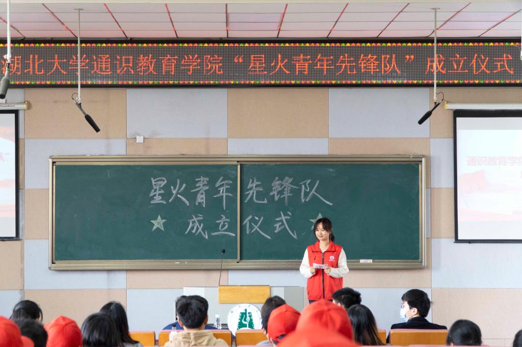 4月19日12时,通识教育学院“星火青年先锋队”成立仪式在B300教室举行,学院党委书记焦新曦、党委副书记韩凯、副院长向祖慧、学工党支部全体党员及“星火青年先锋队”全体队员参加仪式,学工党支部副书记程垚瑞主持仪式。