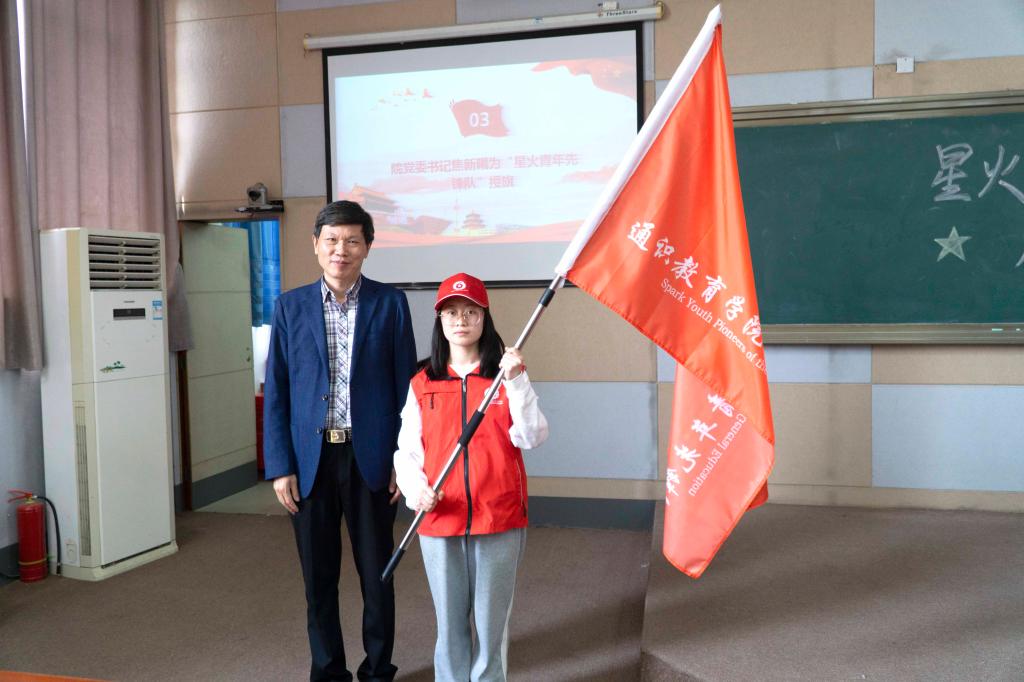 仪式最后,焦新曦书记为“星火青年先锋队”授旗,并宣布仪式结束。