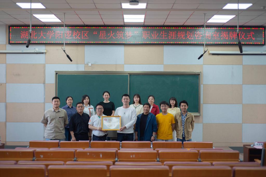 随后,肖志华与韩凯一起上台揭牌,宣布湖北大学“星火筑梦”职业生涯规划咨询室正式成立。