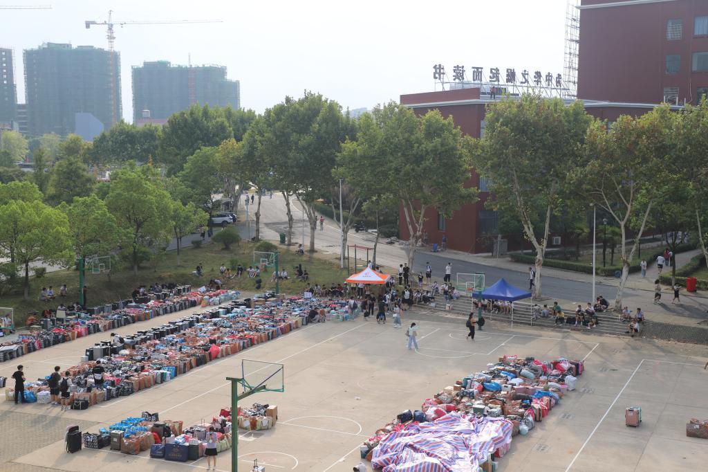 凌晨五点,天色还没有一点点要亮的想法时,校区的宿舍楼就响起了阵阵行李箱滚动的声音,六点左右、直至天渐渐亮,广场越来越满,一辆辆车来了又离开,将同学们和行李送进新的校园。