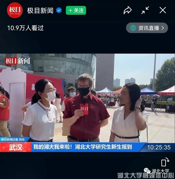 楚天都市报极目新闻对报到现场进行了直播,各平台超40万人次在线观看,学校的暖心迎新广受好评。
