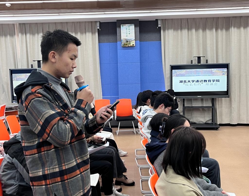 会议伊始,各习苑学生代表、学生组织负责人代表、校务助理联络员代表结合实际,围绕学校治理、基础设施建设、学生的全面发展、管理服务保障等方面积极发问。首先,思源习苑的金梦瑶同学与问道习苑的孙靖洋同学均反馈了英语角夜晚照明条件不好的问题,并希望能够增设路灯以便同学们进行口语练习,提高英语角的使用率。随后,来自问学习苑的杨敏茹、思齐习苑的陈涵英、思明习苑的张家恒以及问津习苑的冯念杰同学纷纷对阳逻校区的规划发展等方面提出了问题,他们希望学院能够增添学生活动室、室内体育场,并完善场所设施。接下来,问鼎习苑的余培正同学反映寝室床铺老化严重,以及校园网不稳定等情况。最后,来自思睿习苑的马合热·木合塔尔同学反映学校食堂竞争力不足,以及公选课开设种类过少这两点问题。