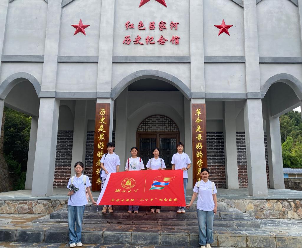吕家河村的红三军司令部旧址和红色历史纪念馆,更是承载了吕家河村的红色革命记忆。在当地政府工作人员带领下,实践队员参观了吕家河红三军司令部旧址,了解了由贺龙元帅带领的红三军,建设了以武当山为中心,包括郧阳区、房县、谷城、保康、南漳在内的鄂西北革命根据地,“使官山成为鄂西北第一面红旗升起的地方”;在红色历史纪念馆中,实践队员更深入地学习了党的发展历程和党的使命担当,将门前牌匾的“历史是最好的教科书,革命是最好的营养剂”铭记于心。