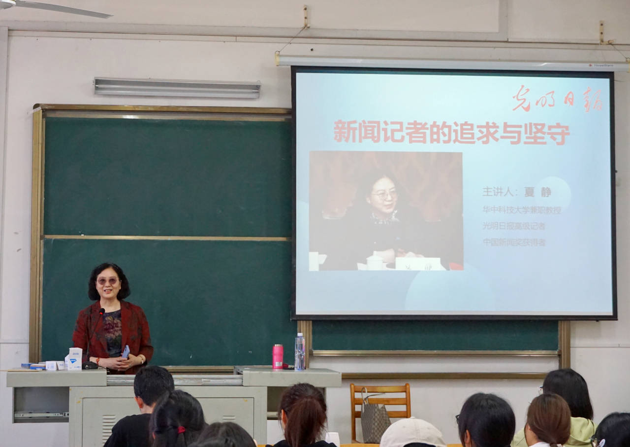 为进一步提升我院学生对宣传思想文化工作的认识,10月18日下午,《光明日报》高级记者夏静应邀到湖北大学阳逻校区为2023级新闻传播学类专业学生作题为《新闻记者的追求与坚守》的讲座。
