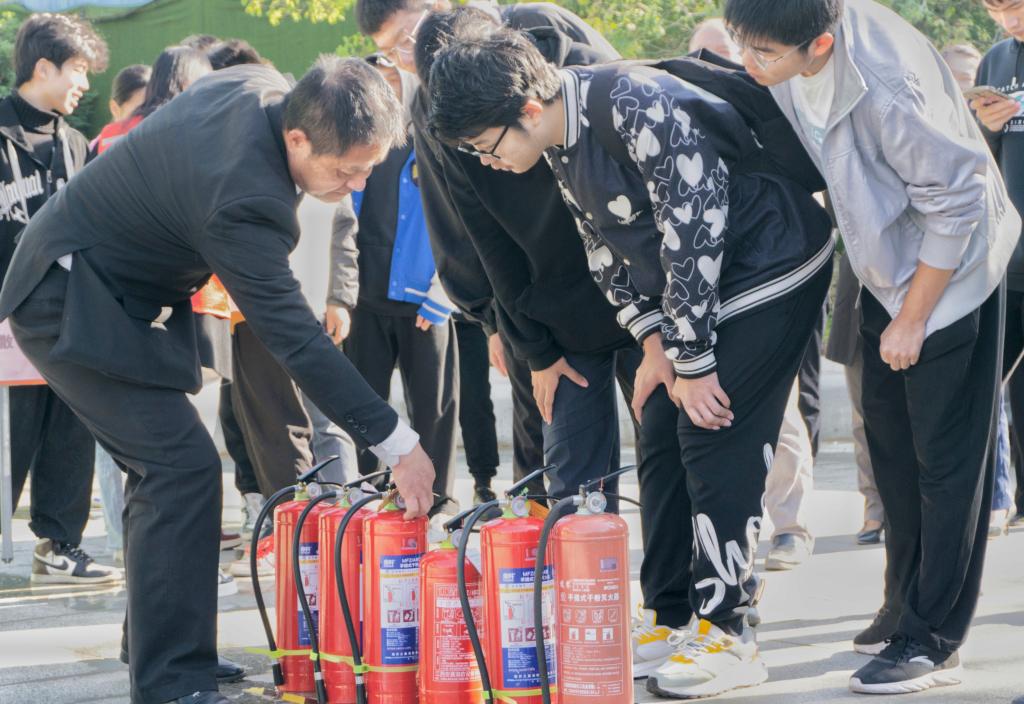 “一摇二对三拨四压”,巡逻队队员2023级量子信息科学专业学生汪紫怡谨记灭火口诀,勇敢尝试,切身体会了灭火器的操作。她说:“在此次演练中,我学习到了在火灾中自救的相关知识,增加了我应对未来突发情况的信心。”