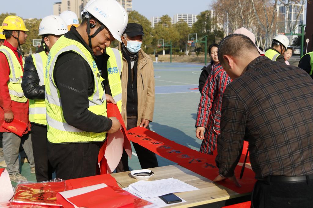 荆楚“红色文艺轻骑兵”是湖北省宣传思想文化战线上的重要文艺力量和文化名片,此次在阳逻校区开展的迎新春送春联活动,不仅为我校教师职工、目前投身校区建设的中建三局产业工人、若城社区居民带来了新年的温暖,而且以春联为载体,将中华优秀传统文化和红色文化融入其中,传递了荆楚大地上的新春祝福,让整个校区充满着喜气洋洋的节日氛围。