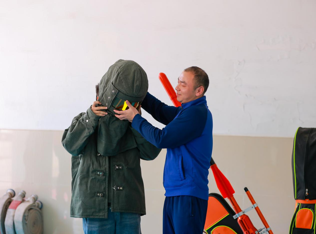 消防员们还热情地邀请学生们试穿消防隔热服,学生们纷纷举手表示想要尝试。2023级通信工程专业的李岩体验后感慨道:“这件衣服很厚重,不怎么透风,可以想象穿这件衣服工作的消防员战士们的辛苦与不易。”在消防员的带领下,同学们走进了三楼的荣誉室,了解了阳逻消防救援站的发展历程与背景,墙上悬挂的奖状和锦旗让同学们驻足赞叹。