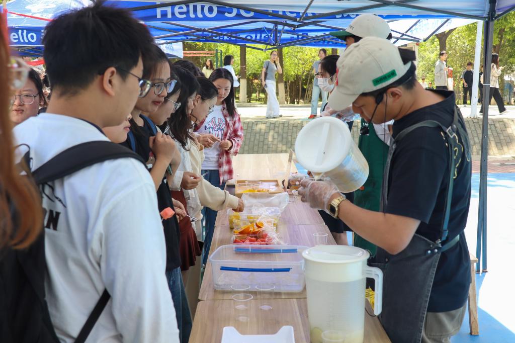活动现场设置了多个便民服务摊位,涵盖师生日常生活所需。维修摊位前,技术人员娴熟地为师生检修电器;裁缝师傅飞针走线,解决衣物改制等问题,赢得一致好评。问津苑食堂推出的创意点心和菜品香气四溢,吸引众多师生排队品尝,现场气氛热烈。