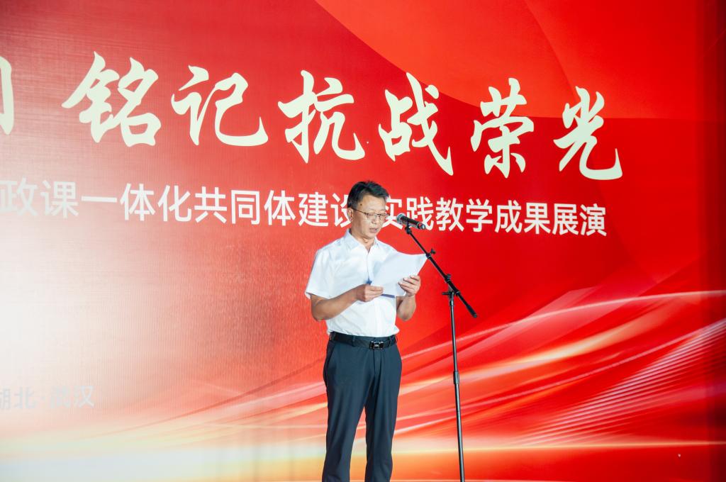 高桂林在致辞中强调,值此抗日战争胜利80周年之际,举办“捍卫历史真相 铭记抗战荣光”《中国近现代史纲要》实践教学展演,是贯彻习近平总书记关于“铭记历史、缅怀先烈、珍视和平、开创未来”重要指示精神的生动实践,也是我校“大思政课”建设的核心要义——让课堂走出教室,让教育扎根大地,让青年在知行合一中成长为堪当大任的时代新人。他还指出,今天的展演活动,是两校区师生携手创作的结晶,希望全体师生以此次活动为契机,厚植爱国情怀,深耕协同育人,共同书写“一校两区”高质量发展的新篇章,让思政教育的火种在理论与实践的交融中生生不息!