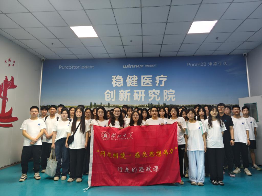 为深入学习贯彻习近平总书记“把科技的命脉掌握在自己手中”的重要指示精神,5月22日至23日,“问道荆楚・感受思想伟力”行走的思政课第三次活动暨“科技报国行”研学活动第二站圆满结束。在辅导员余奕、袁文豪的带领下,50名材料类专业学生走访参观了稳健医疗创新研究院和武汉产业创新发展研究院,实地感悟科技创新的时代脉搏。