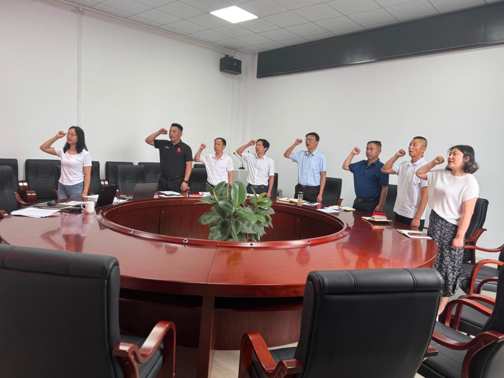 会议通报了党员到会情况和5月交纳党费情况,全体党员奏唱国歌、重温入党誓词、诵读党章。