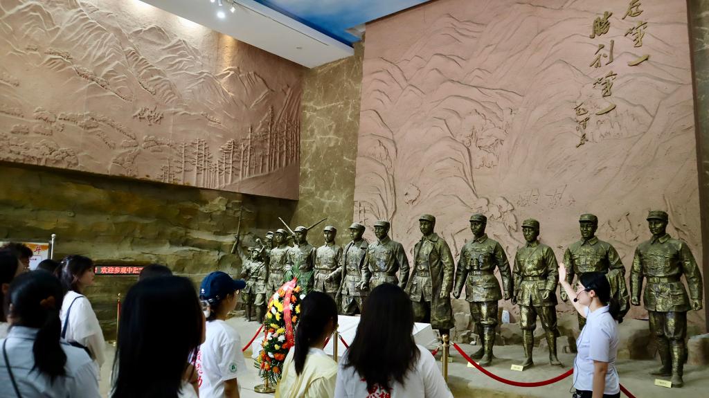 随后,师生们肃立于鄂豫边区革命烈士陵园。高耸的纪念碑上,“为革命事业英勇牺牲的烈士们永垂不朽”的金色题字熠熠生辉。学子们列队瞻仰,向长眠于此的英雄默哀致敬。在刻有军民斗争浮雕的碑座前,大家驻足凝视,感受血与火锻造的家国情怀。烈士纪念馆内,188位烈士的英勇事迹与37位开国将领的丰功伟绩,以丰富史料生动展现,进一步激发了学子们对党的光辉历程的认同感与传承使命的责任意识。