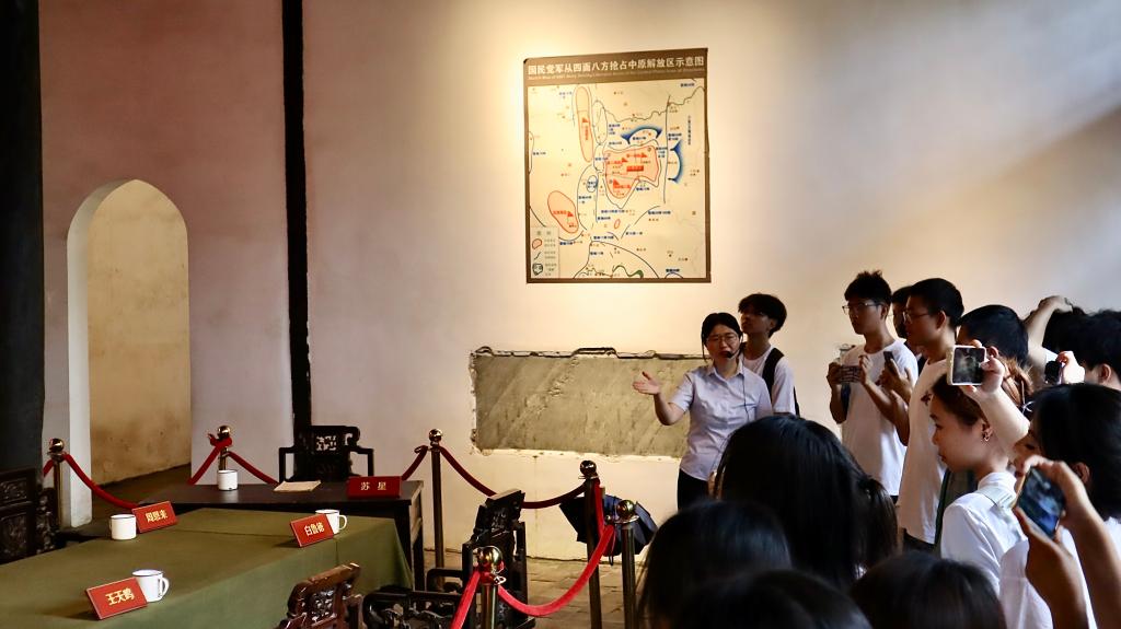 研学首站抵达中原大突围纪念馆。在专业讲解导师的深情讲述中,学子们深入了解了1946年中原军区部队在生死存亡关头以弱胜强、成功突围的历史壮举。馆内浮雕、史料与旧址遗迹,将那段烽火岁月具象呈现。同学们凝视战略地图、触摸历史实物,深刻体悟革命先辈“为了民族独立和人民解放”所展现的坚定信念与牺牲精神。在纪念馆前广场,一堂别开生面的“红色朗诵”体验式党课同步展开,铿锵誓言回荡,理想信念在此升华。
