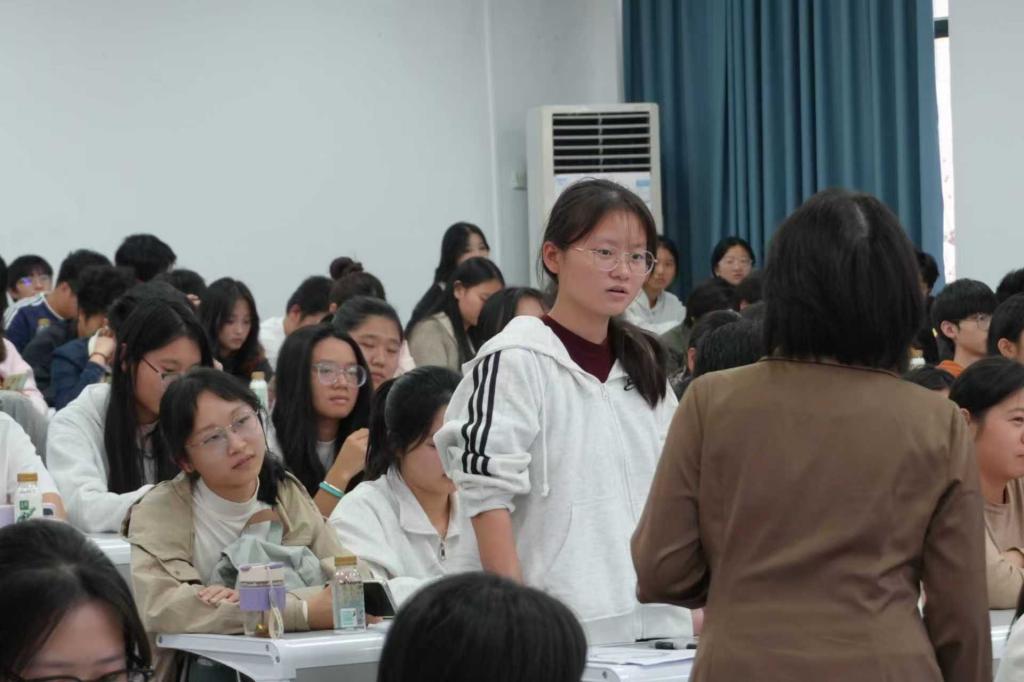互动环节现场气氛热烈,学生们积极提问。2025级汉语言文学(师范)专业学生何梦涵问道:“作为学生,我们可以从哪些小事做起,为非遗的数字化传播贡献力量?”周丽玲鼓励学生关注并参与身边的非遗项目,如“九凤新生代创意SHOW”等校内社团。她希望青年学子能积极投身非遗的现代化实践,在创意设计、新媒体传播中亲身感受传统文化魅力,在实践中收获成长。