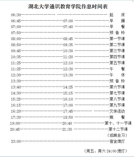 3、“第九节课”适用在通识教育学院过夜的任课教师,“第五节课”不安排课堂教学任务。