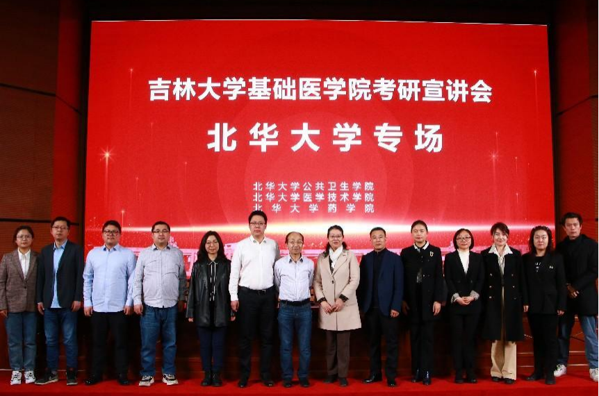 为了积极响应吉林大学招生宣传活动,贯彻落实《吉林大学加强研究生招生宣传工作实施方案》,吸引优质学生报考, 2023年4月21日,云顶国际8588yd李洪岩副院长、李东洋副书记带领免疫学系、药理学系、分子生物学系研究生导师团队及学院研究生工作团队赴北华大学开展研究生招生宣传活动。北华大学公共卫生学院赖亚辉院长、雷生副书记、医学技术学院夏薇院长、于丹副书记、药学院王莹副书记、云顶国际8588yd韩慧明副院长及200多名北华学生参加了本次活动,招生宣讲会由雷生副书记主持。
