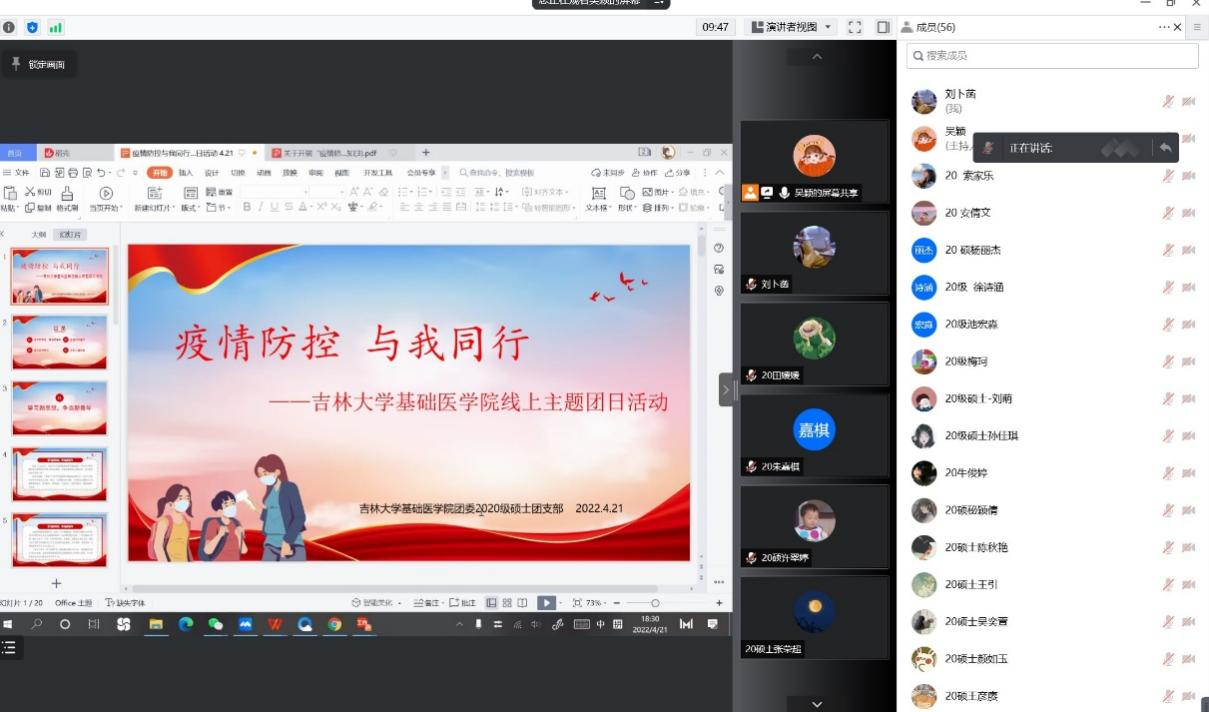 为更好地助力院校两级疫情防控工作,发挥广大青年团员主力军的作用,2022年4月12日,云顶国际8588yd2020级硕士团支部在线上开展了“疫情防控,与我同行”主题团日活动。学院团委负责人、研究生辅导员孙佳钰老师以及2020级硕士全体团员参加,活动由2020级硕士团支书吴颖主持。