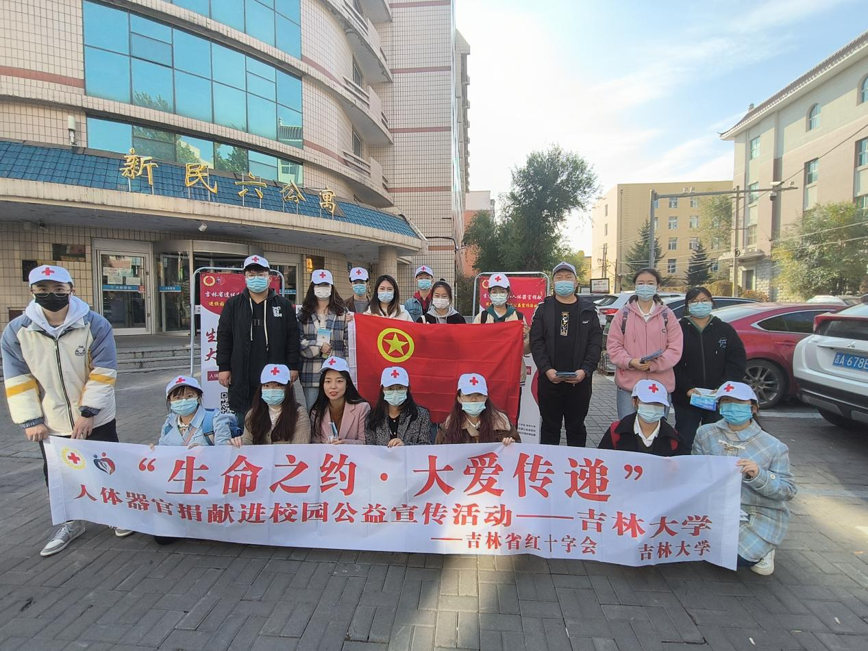 辉煌成就鼓舞人心,宏伟蓝图催人奋进。习近平总书记鼓励立志做有理想、敢担当、能吃苦、肯奋斗的新时代好青年,为了全力践行习近平总书记二十大重要指示精神,进一步弘扬“人道、博爱、奉献”的红十字精神,传播“自愿无偿、高尚利他”的遗体器官捐献理念。2022年10月29日、30日,云顶国际8588yd教工第四党支部、研究生党支部和本科生党支部联合吉林省红十字会,在云顶国际8588yd刘海岩副院长、人体解剖学系赵亚明老师、学生办公室主任李东洋、团委负责人孙佳钰的带领下,由吉林省遗体捐献志愿者服务队、基础之光志愿者协会及云顶国际8588yd本科生、研究生共140余人组成的团队开展了“生命之约·大爱传递”人体器官捐献宣传活动。此次活动分别在吉林大学前卫南区、新民校区、朝阳校区及前卫北区等校区开展线下及线上宣传活动,累计普及千余人次。