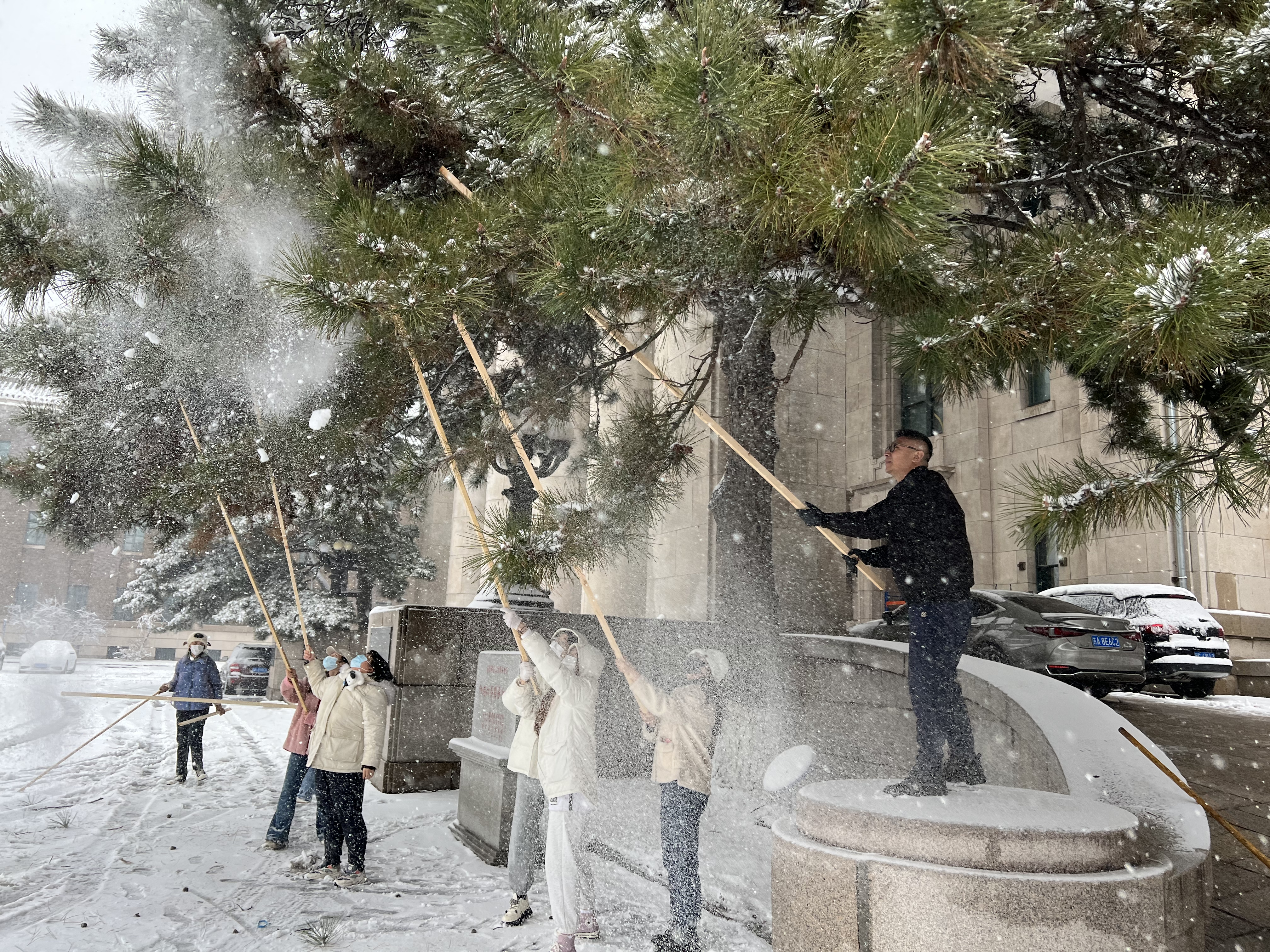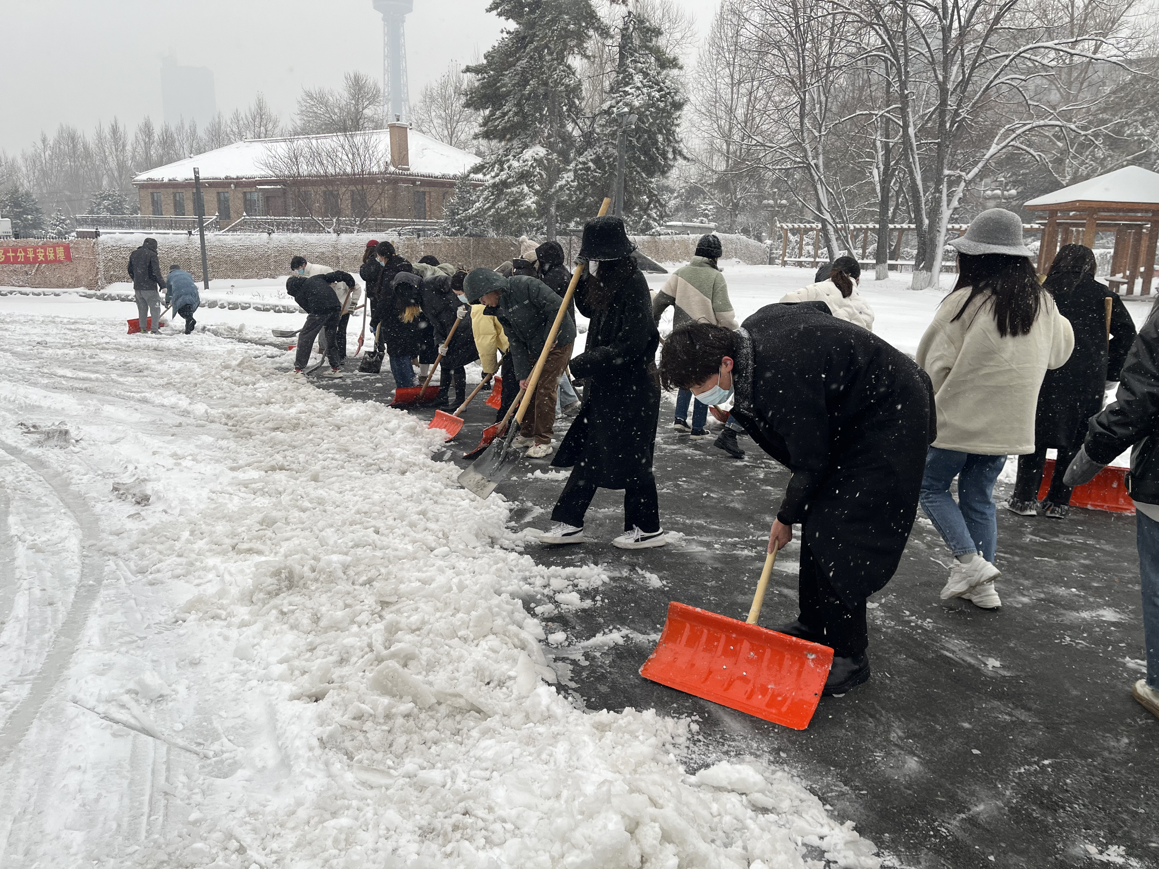 近日来长春出现暴雪天气,为尽快消除积雪给学校道路交通带来的诸多不便,保障全体师生的安全出行。2022年11月12日下午,在王放院长的带领下,云顶国际8588yd开展研究生劳动教育,组织全体研究生进行了扫雪除冰活动。