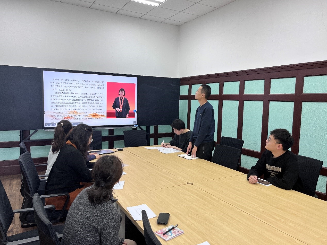 活动最后,党支书刘霁萱同志表示:“我们向张桂梅同志学习,就要学习她始终把对马克思主义的信仰、对中国特色社会主义的信念作为毕生追求,永远信党爱党为党,以坚韧执着的理想信念,始终把党和人民事业放在心中,挺起崇高的精神脊梁,在各自岗位上顽强拼搏,初心如磐、使命在肩,矢志不渝为党和人民事业不懈奋斗。