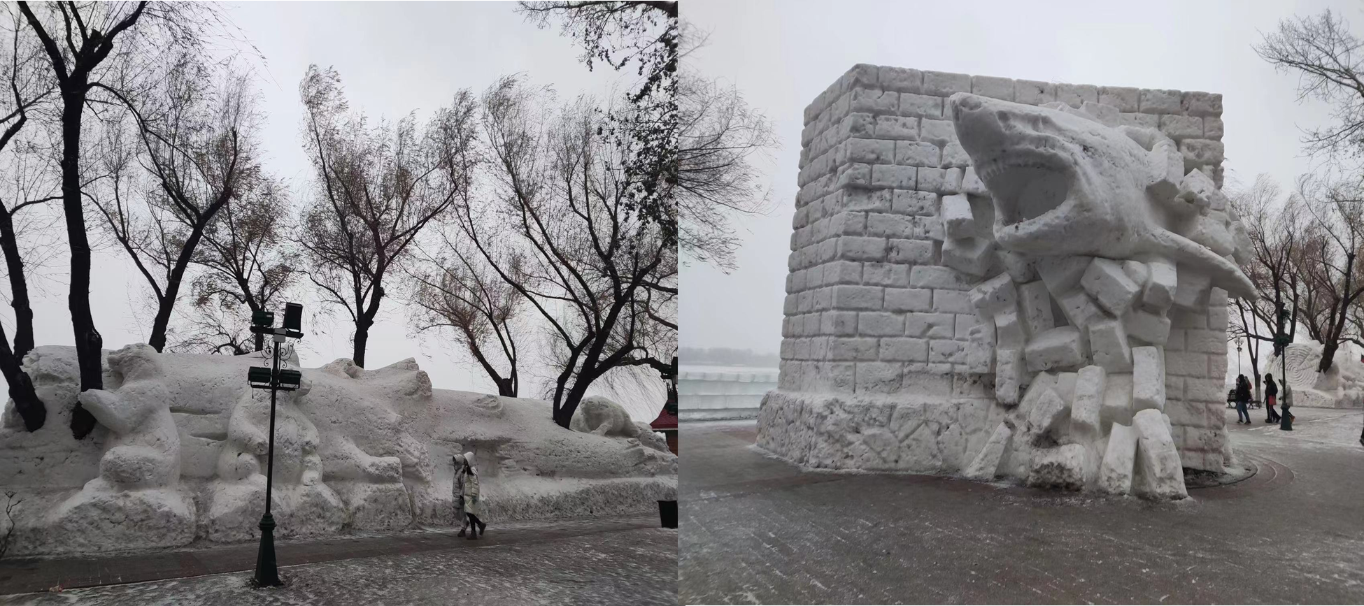 首先,“赏玉桂琼枝,游魅力北国”小队一同参观了哈尔滨市人民防洪胜利纪念塔,它坐落在风景如画的松花江南岸,是为纪念哈尔滨市人民战胜1957年的特大洪水,于1958年建成的,是这座英雄城市的象征。塔下阶表示海拔标高119.72米,标志1932年洪水淹没哈尔滨时的最高水位;上阶表示海拔标高120.30米,标志1957年全市人民战胜大洪水时的最高水位。在纪念塔周围还有各种冰雕雪塑,栩栩如生,技艺之精,令人赞叹。这是哈尔滨市民同自然灾害奋勇抗争、不屈不挠精神的记录和象征。