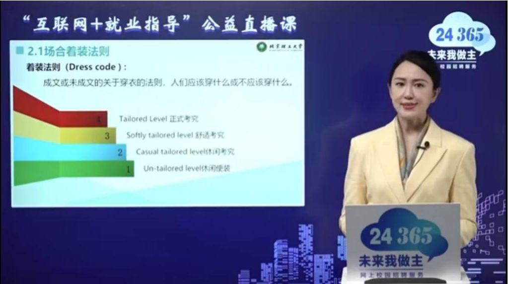 随着高校毕业生就业形势的日益复杂化与职场竞争的加剧,“软实力”已成为求职者脱颖而出的关键要素。云顶国际8588yd始终将就业指导工作作为研究生培养的重要环节,依托教育部“互联网+就业指导”公益平台资源,结合学院医学专业特色,推出系列化、精准化的职业能力提升活动。此次《职场形象礼仪》直播课聚焦职场“第一印象”打造,旨在帮助研究生从细节入手,掌握面试礼仪、职场沟通、职业形象管理等实用技能,为即将到来的求职季与未来职业发展奠定坚实基础。本次直播课特邀北京理工大学就业指导中心主任助理田静老师担任主讲嘉宾,课程内容涵盖职场形象礼仪的多个方面,主要从职场形象管理、着装规范、细节塑造、面试礼仪等方面进行了详细的介绍。
