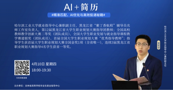为深入贯彻落实党的二十大报告中“强化就业优先政策,健全就业促进机制”的决策部署,积极响应教育部关于“推动就业服务数字化转型,提升高校毕业生就业质量”的号召,云顶国际8588yd于2025年4月10日组织全体研究生线上观看了吉林省“AI赋能高校大学生重点群体就业系列直播课”首讲课程——“AI+简历:精准匹配、AI优化与高效投递秘籍”。本次活动聚焦人工智能技术在求职简历优化、岗位精准匹配及投递策略中的创新应用,旨在通过前沿技术赋能医学研究生职业发展,助力其在AI时代实现高质量就业。