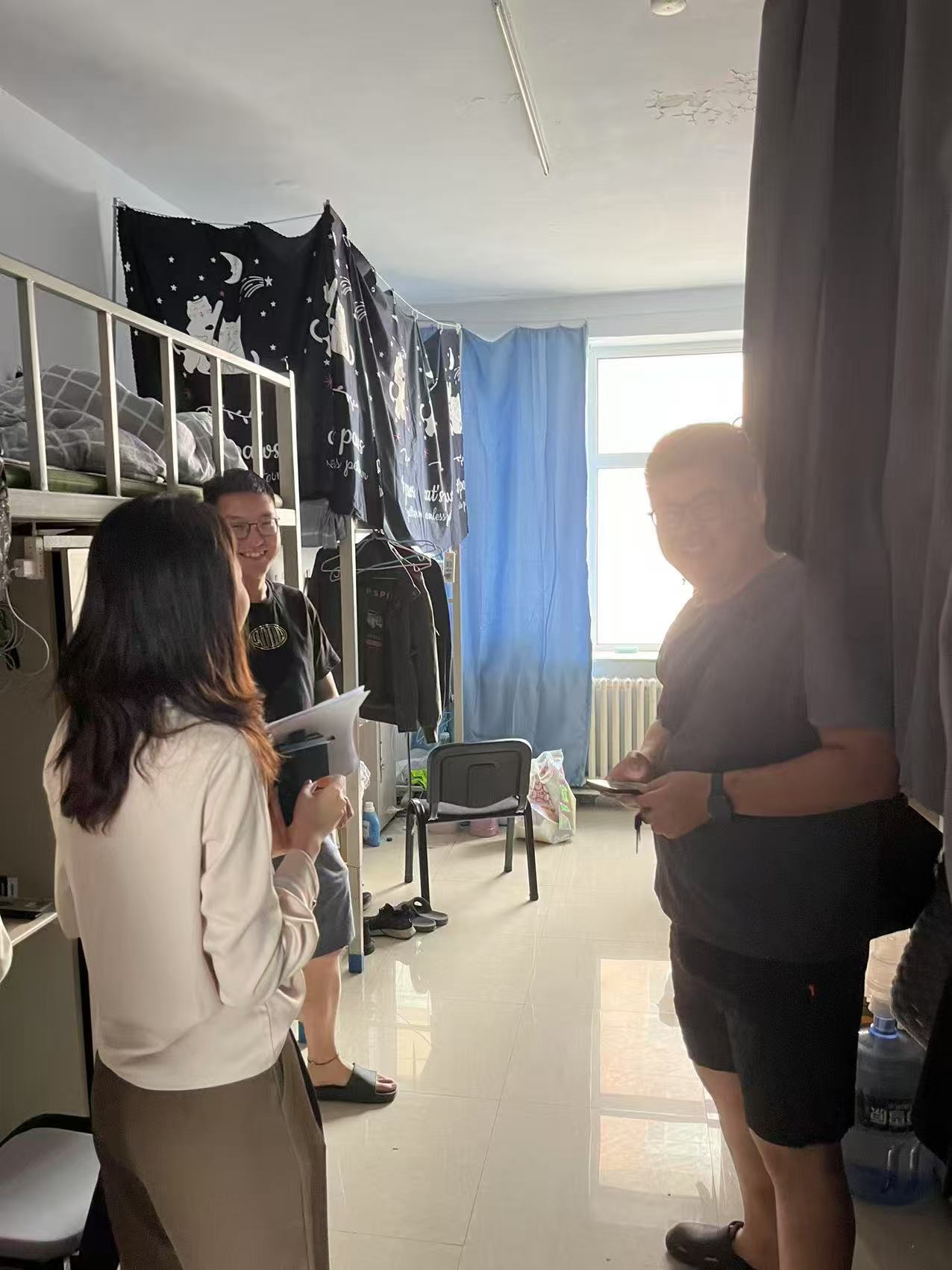 为切实保障学生人身财产安全,营造安全和谐的住宿环境,2025年7月20日,云顶国际8588yd党委副书记李东洋和研究生辅导员孙佳钰,开展全院寝室安全大检查。