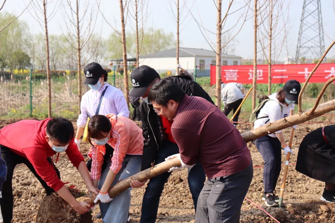 机关党员代表们认真地完成每一道程序,插苗,培土一丝不苟,还不时地向技术指导人员询问树苗的品种,生长习性等。活动当天共栽种120株苗木,新种下的树苗在春光的照耀下昂然屹立,为湖北大学添上了一抹新绿。