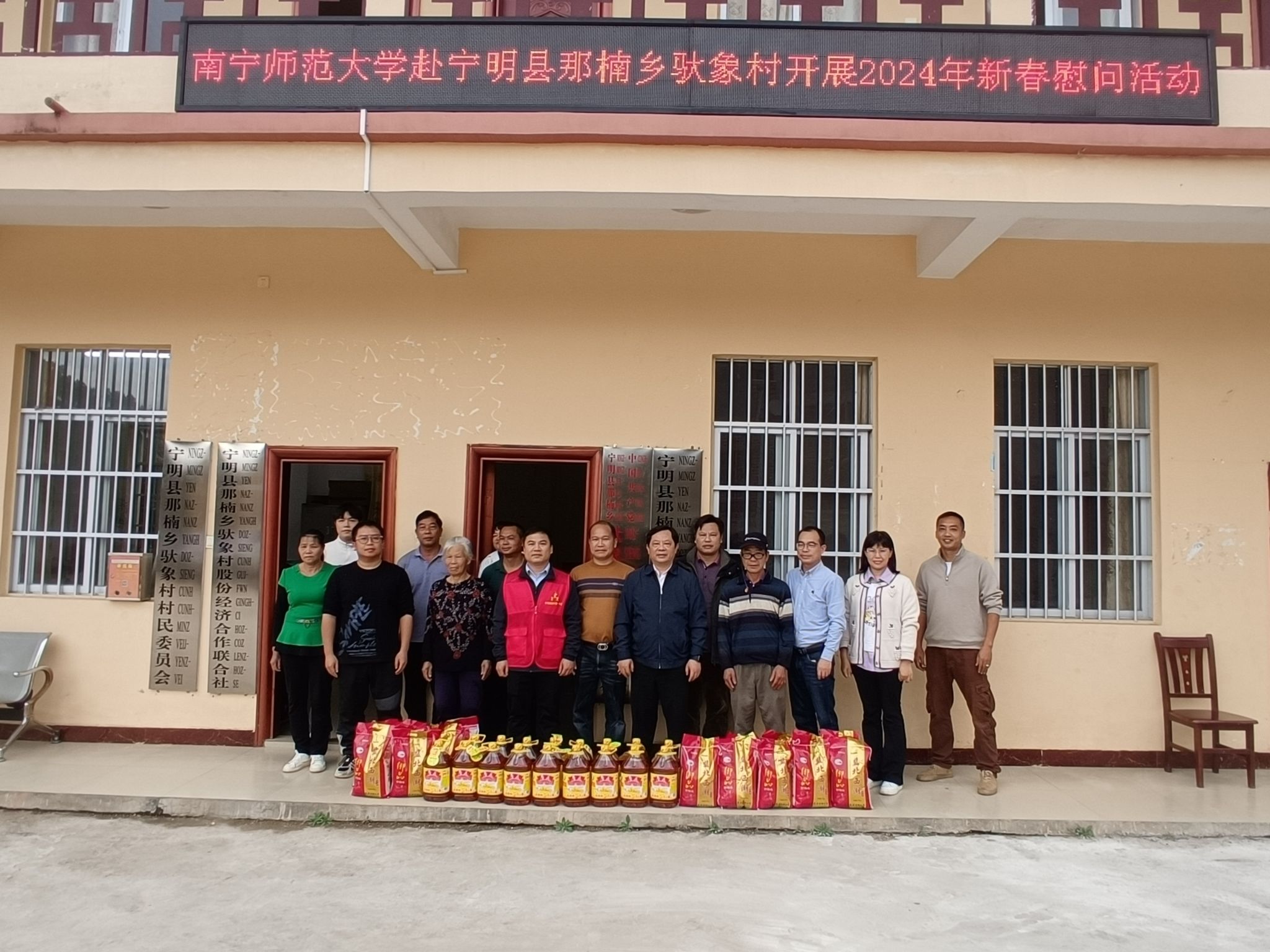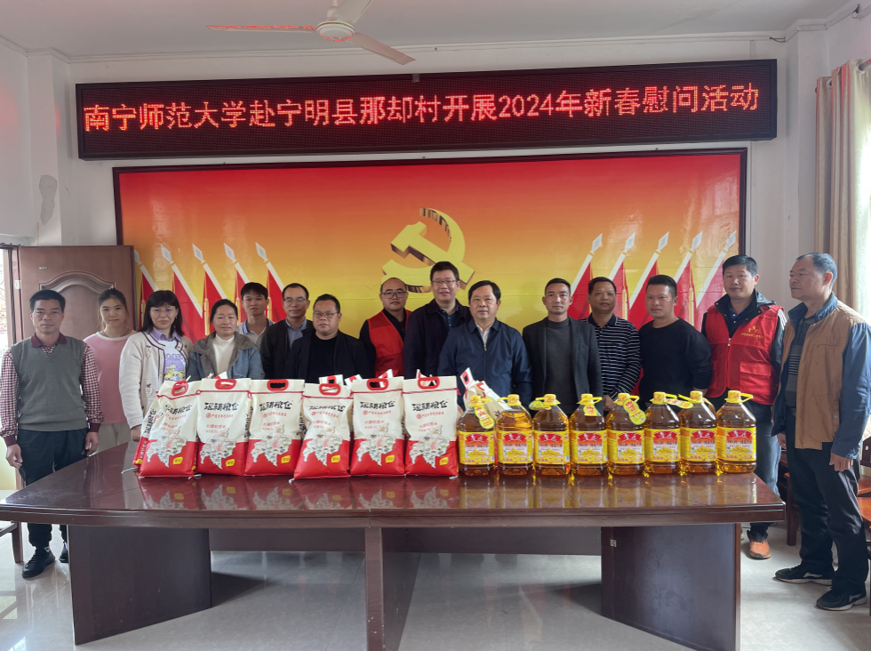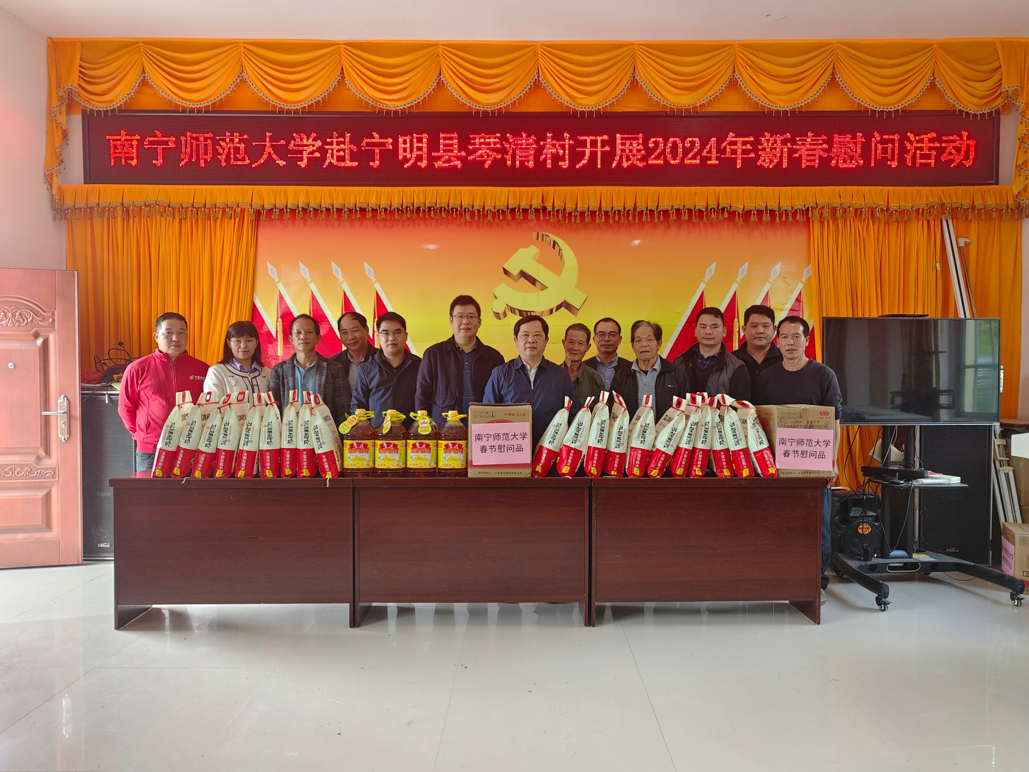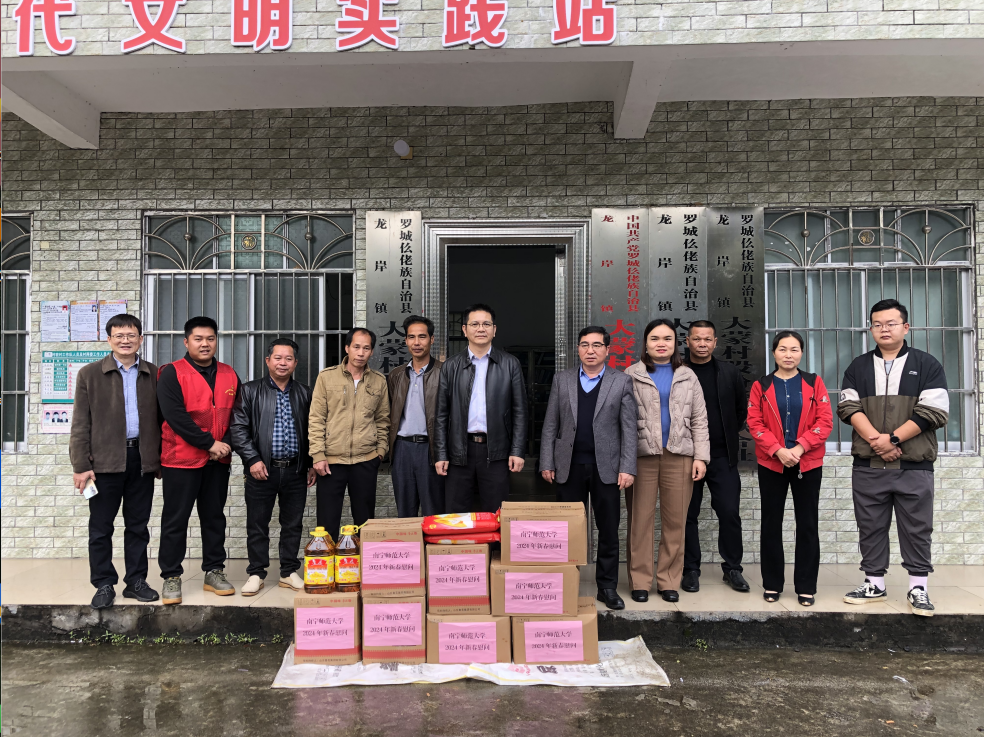 为深入贯彻落实中央和自治区关于巩固拓展脱贫攻坚成果同乡村振兴有效衔接的决策部署,进一步关怀激励驻村干部,凝聚推动乡村振兴的强大合力,近日,在春节即将来临之际,学校党委侯代忠副书记、隆广庆副书记带队赴我校定点帮扶点——宁明县桐棉镇、那楠乡和罗城县龙岸镇12个帮扶村开展春节走访慰问活动。罗城县委常委张文彬以及有关乡镇负责领导陪同慰问。