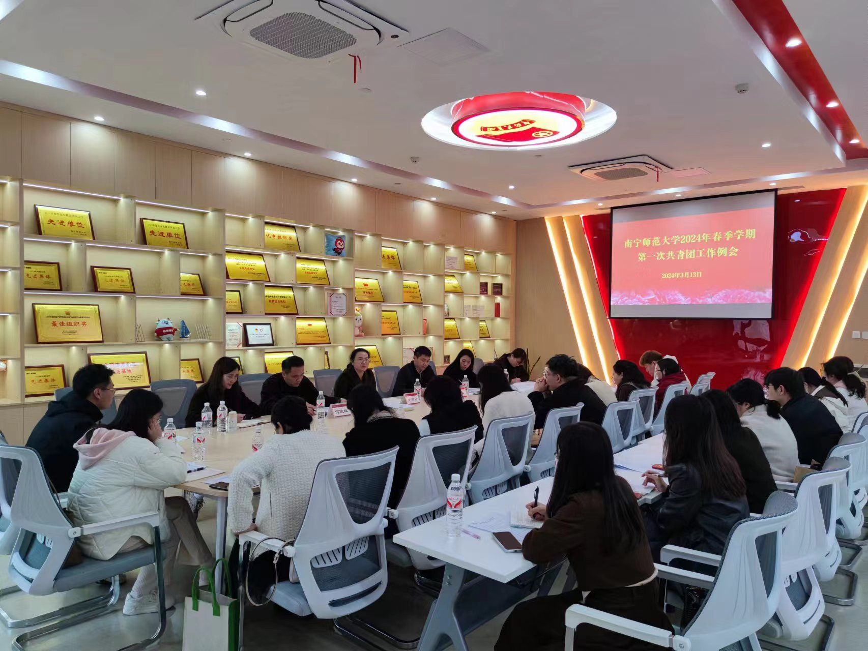 为推进新学期共青团工作有序开展,明确工作重点,提高工作效能,3月13日上午,我校在武鸣校区第二课堂体验中心召开2024年春季学期第一次共青团工作例会。校团委全体成员、各学院团委书记和分管团学工作的老师参加了本次会议,会议由校团委副书记何俊斌主持。