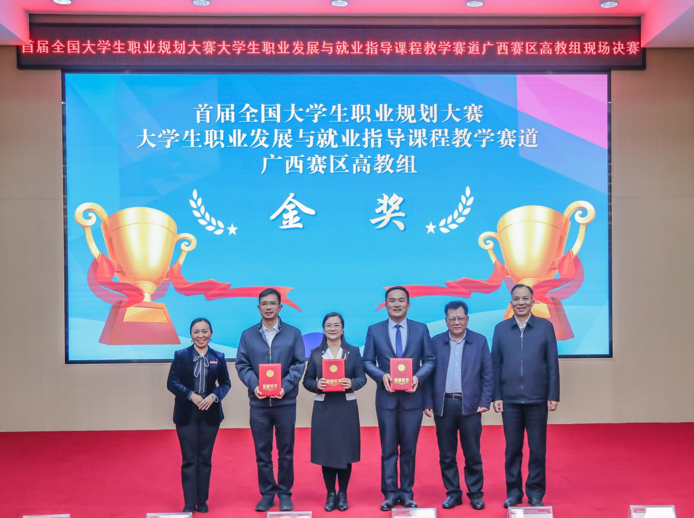 颁发首届全国大学生职业规划大赛大学生职业发展与就业指导课程教学赛道广西赛区高教组金奖证书