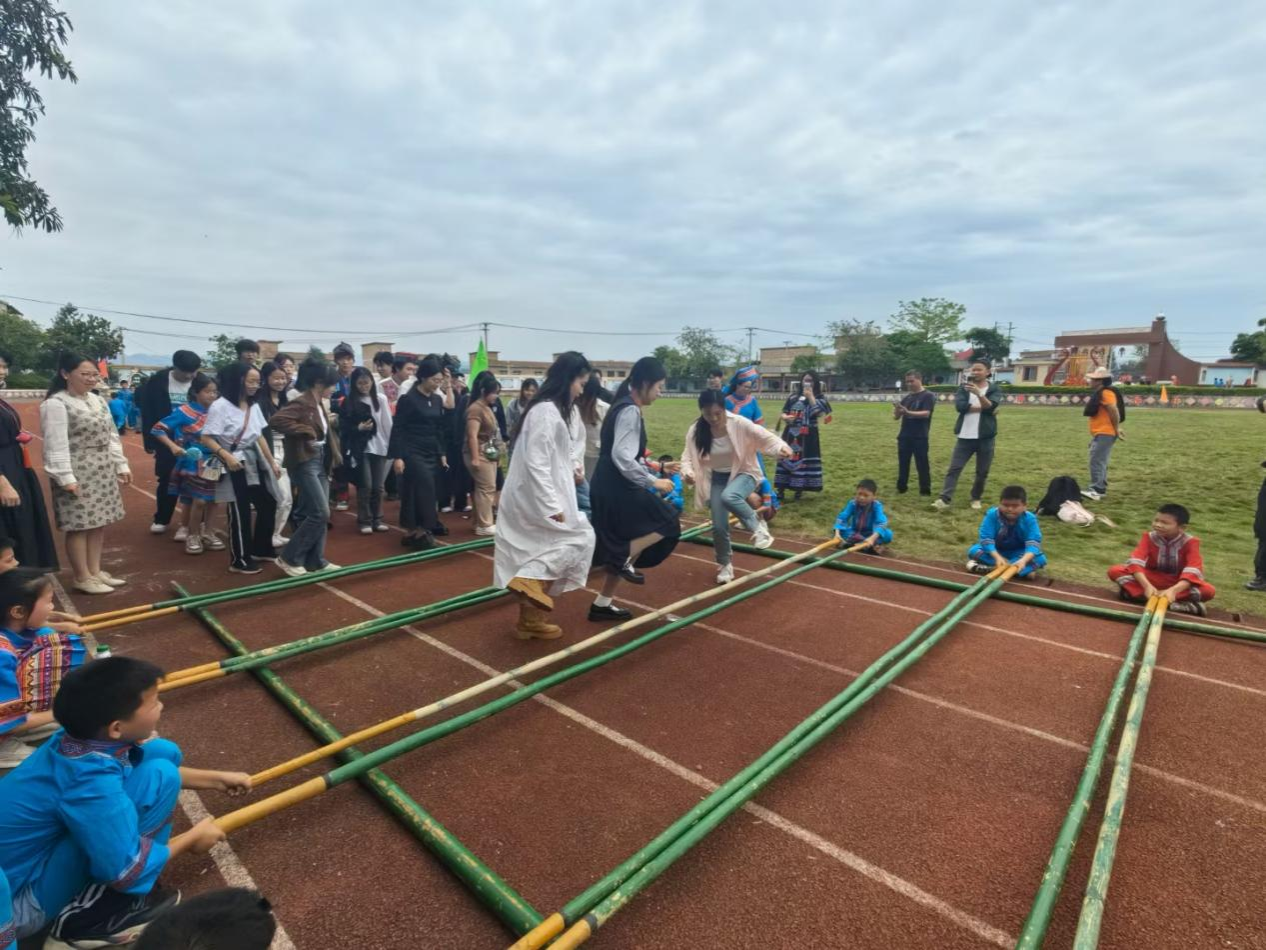 3月30日-31日,学校分别在五合、武鸣校区举办了包含踩高跷、竹竿舞、抛绣球、三人板鞋、跳大绳、乒乓球接力、蒙眼击鼓、拔河等10余个学生热爱的民族运动项目的民族运动会。随着竹竿的开合节奏,同学们轻盈地跳跃、穿梭,舞姿优美,展现出极高的协调性和灵活性;抛绣球考验着同学们的准确度和配合力,绣球在空中划出一道道优美的弧线;拔河比赛更是将运动会现场气氛推向高潮,比赛双方紧握麻绳,奋力拉拽,呐喊声、助威声响彻云霄。运动会上,同学们热情洋溢、兴致高昂,全身心地投入其中,感受着民族文化的魅力,展现出了对民族特色运动的深深热爱。