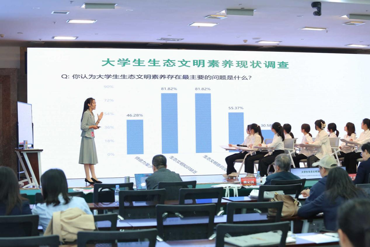 此次教学展示活动自2024年1月启动,经过视频征集、网络展示、专家遴选等环节,全国共337份作品进入初选,其中100件作品入围网络展示环节。经专家遴选,最终有全国高校38名选手进入现场教学风采决赛展示环节。在现场教学展示过程中,李樱花老师以《生态安全——习近平生态文明思想》为主题,结合生动具体的案例,将生态安全的知识与个人价值紧密融合,激发了青年学生树立生态文明思想、总体国家安全观思想。