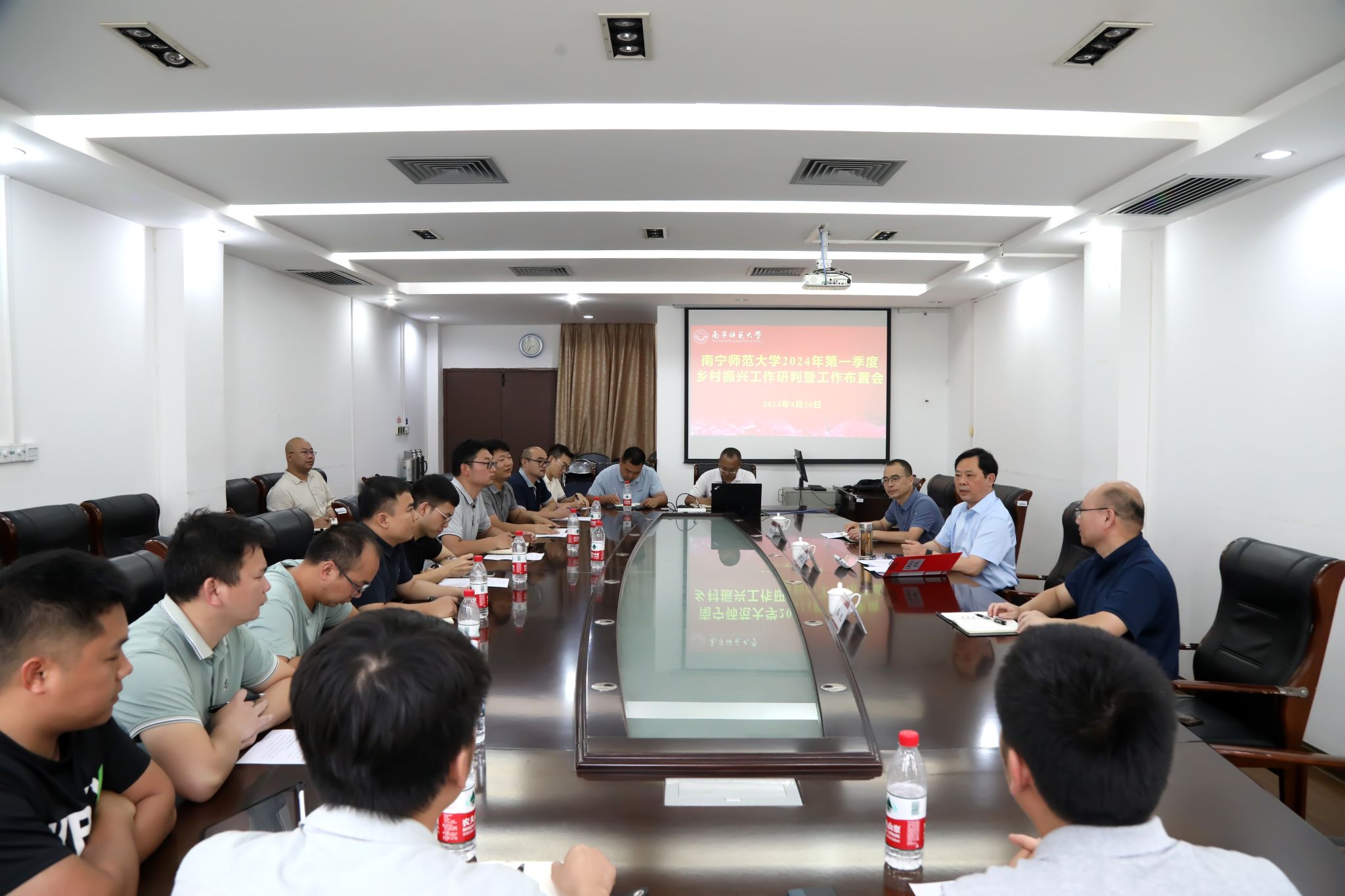 4月26日,我校在明秀校区召开2024年第一季度乡村振兴工作研判暨工作布置会。校党委副书记侯代忠,校党委组织部、乡村振兴办有关负责同志,全体现任驻村工作队员参加了会议。