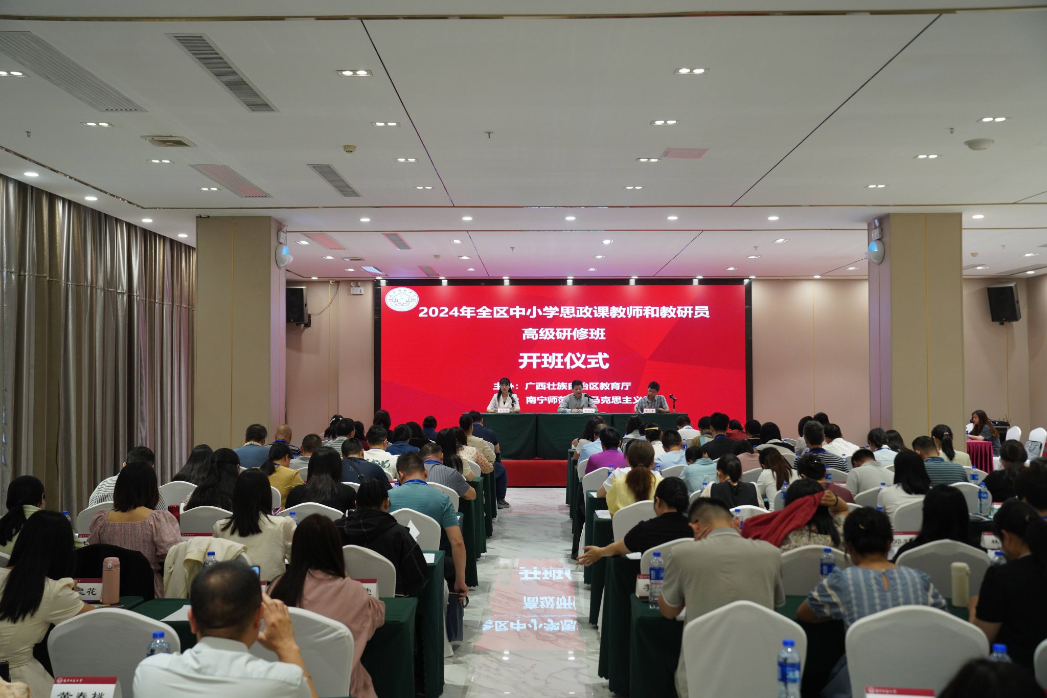 为深入贯彻落实党的二十大精神,进一步落实立德树人的根本任务,全面加强新时代中小学思政课教师和教研员队伍建设,提升全区中小学思政课教师和教研员教育教学及研究能力,4月24-27日,由广西壮族自治区教育厅主办、我校马克思主义学院承办的2024年全区中小学思政课教师和教研员高级研修班在南宁成功举办。