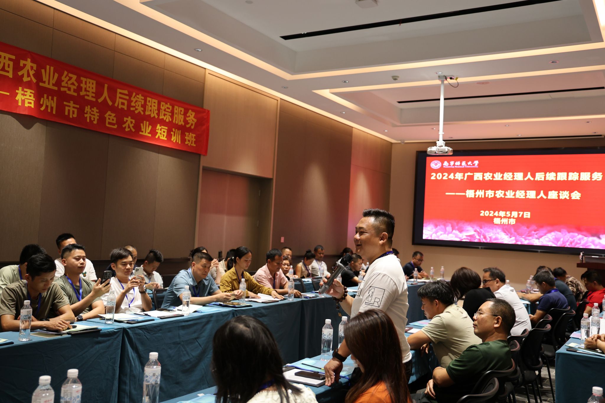广西农业经理人培训是自治区农业农村厅主办的高素质农民培训自治区级“头雁”项目中厅校合作的成功典范,从2018年开始,在自治区农业农村厅的指导和支持下,我校作为全区唯一的广西农业经理人培养培训基地,持续培养了17期,超过1700名广西农业经理人学员。为进一步提升广西农业经理人培养培训工作质量,做好学员到校培训后的跟踪指导与服务,服务广西各市、县特色农业发展,我校首选梧州市,从5月7日至11日正式启动2024年广西农业经理人后续跟踪服务工作。