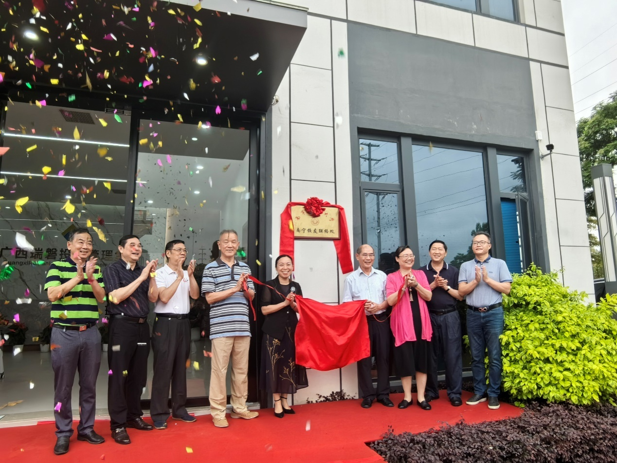 龙妮娜副校长,南宁校友联络处陈小建、门传真、蒙少忠、陈映红、尹如琴、宁耀、邹循东、梁进鸿等校友共同为南宁校友联络处牌匾揭幕,在礼炮声和校友们热烈的掌声中,南宁校友联络处活动地点正式在校友企业落地。